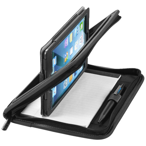 Etui na iPad mini Flip.Objęte wzorem zastrzeżonym etui zaprojektowane na iPad mini z notesem, w którym zrobisz notatki oglądając multimedia z iPada. Zaprojektowane specjalnie na iPad mini. Ma przegrodę na wizytówki i pętlę na długopis. Zapakowane w pudełko upominkowe Project iQ.Imitacja skóry.