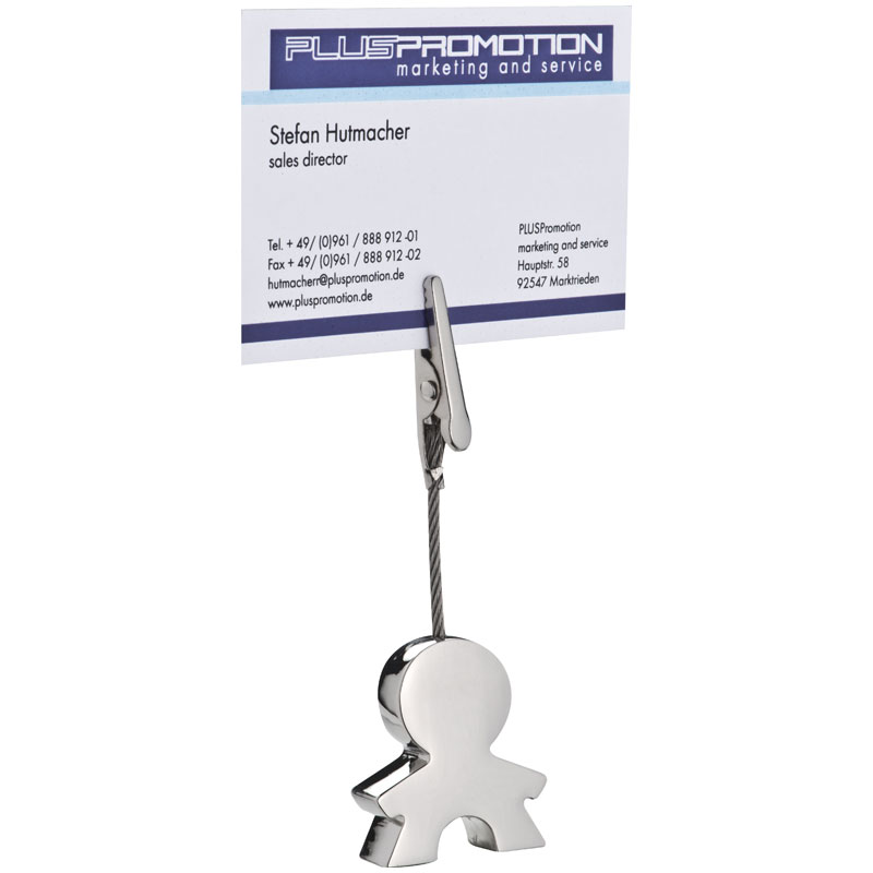Klip do notatek w kształcie ludzika, wykonany z metalu. Możliwość znakowania bezpośrednio na ludziku.