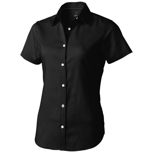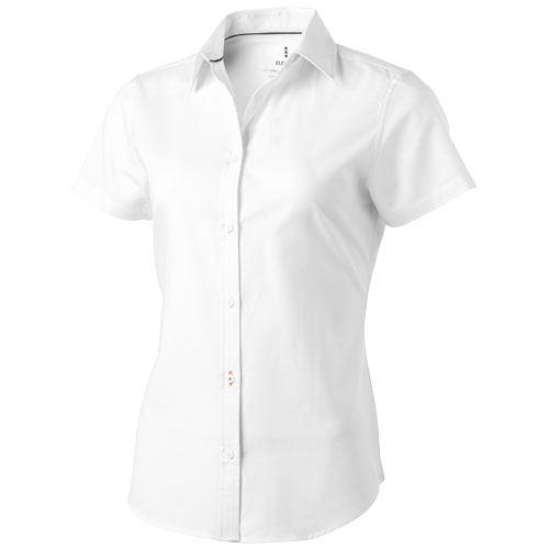Koszula damska Manitoba. Męska wersja z przypinanym kołnierzykiem. Białe guziki z logo Elevate. Druga dziurka od guzika obszyta pomarańczową nicią. Logo nadrukowane na plecach w kolorze materiału. Satynowa lamówka wewnątrz na karku. Splot Oxford 100% bawełny, 40x32/2, 110x50. 140 g/m²