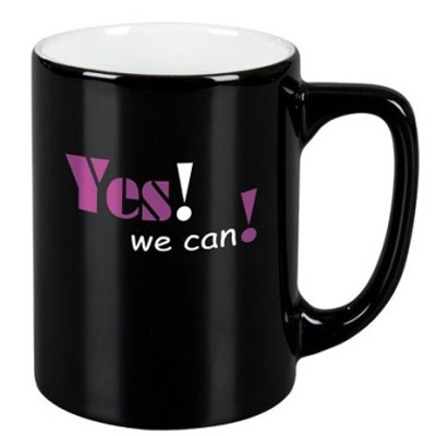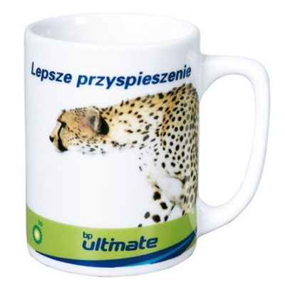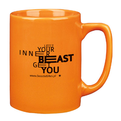 Ceramiczny kubek o prostym kształcie i wygodnym uchwycie.