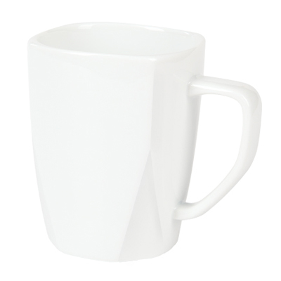 Charakterystyczny kubek z wyraźnie zaznaczonym ośmiokątnym dnem. Wykonany z porcelany Royal White.