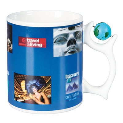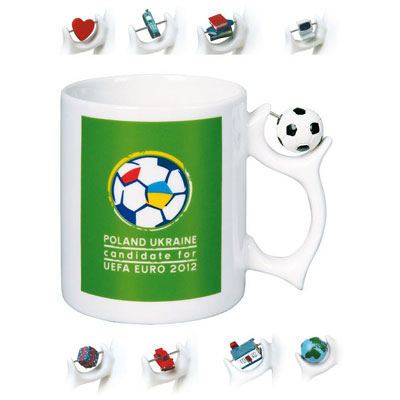 Kubek o niepowtarzalnym kształcie z miejscem na dodatkowy gadżet reklamowy na uchwycie.