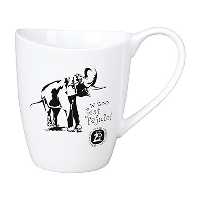 Porcelanowy kubek, który dzięki bardzo dużemu uchwytowi wygodnie leży w dłoni.