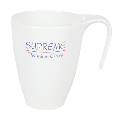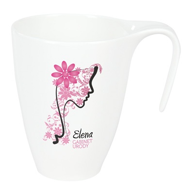 Kubek o lekkim wzornictwie i delikatnych kształtach. Niespotykany kształ uchwytu przyciąga spojrzenia. Produkt wykonany z porcelany Royal White.