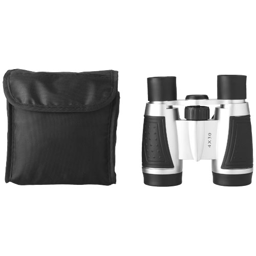Lornetka 4 x 30. Lornetka posiada gumowe wykończenia, miękkie oprawy okularów dla wygody użytkowania i taśmę do zawieszenia lornetki na szyi. Kątowe pole widzenia na 217m / 1000m. Czterokrotne zbliżenie. Lornetka jest zapakowana w czarne nylonowe etui. Plastik.