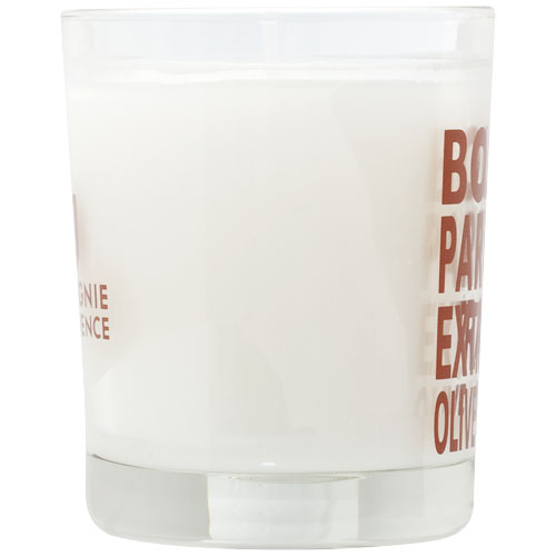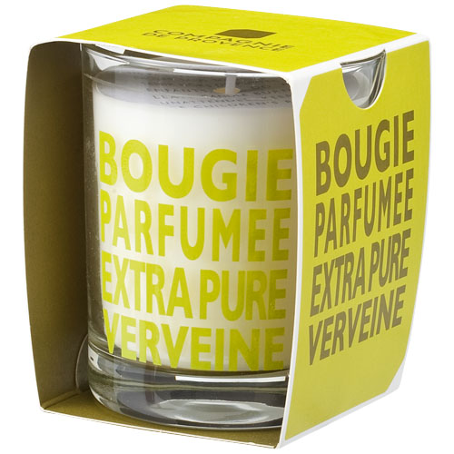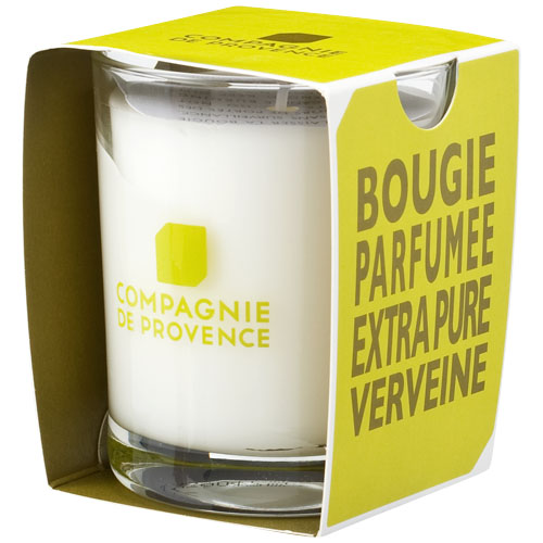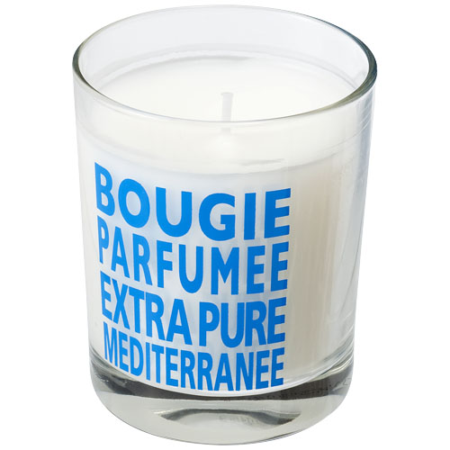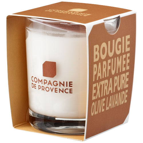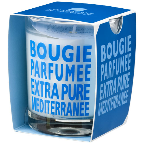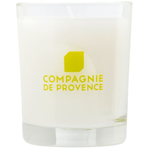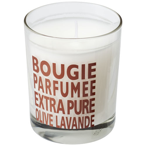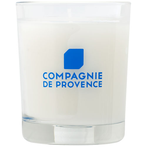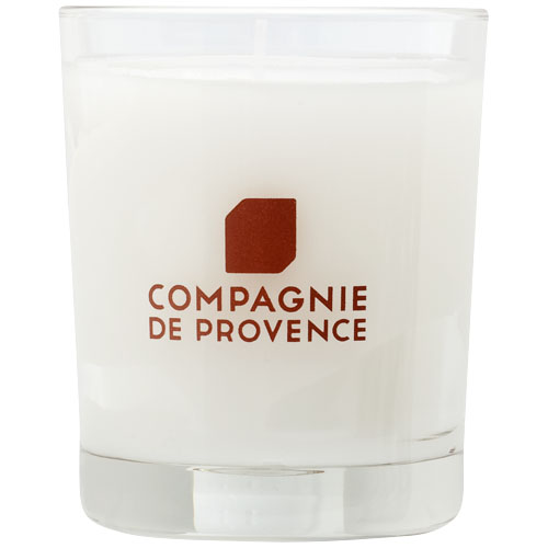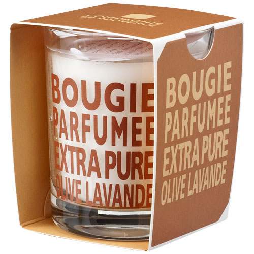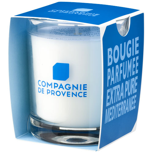 Świeczka zapachowa. Rozświetl swój dom elegancką świecą zapachową w ozdobnym szkle. Zapach będzie się rozprzestrzeniał po całym domu pozostawiając długotrwały, przyjemny aromat. Dostępna o zapachach: oliwki i lawendy, morza śródziemnomorskiego i werbeny. Wzór zastrzeżony. Wyprodukowane we Francji. Dekoracja na słoiczku nie jest możliwa. Szkło.